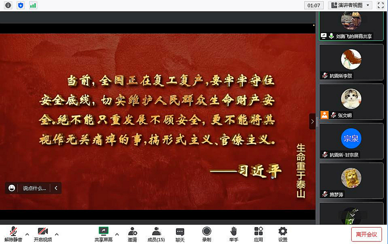為深入學(xué)習(xí)貫徹習(xí)近平總書記關(guān)于安全生產(chǎn)的重要論述和重要指示精神,統(tǒng)籌發(fā)展和安全,切實(shí)加強(qiáng)職工安全生產(chǎn)意識,12月23日上午抗震所組織本部門職工通過線上方式集中學(xué)習(xí)了電視專題片《安全重于泰山》。